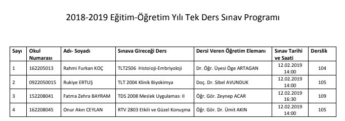 2018-2019 Eğitim-Öğretim Yılı Tek Ders Sınav Programı Son Güncelleme : 06.02.2019 16:56:56 Okunma Sayısı : 1032