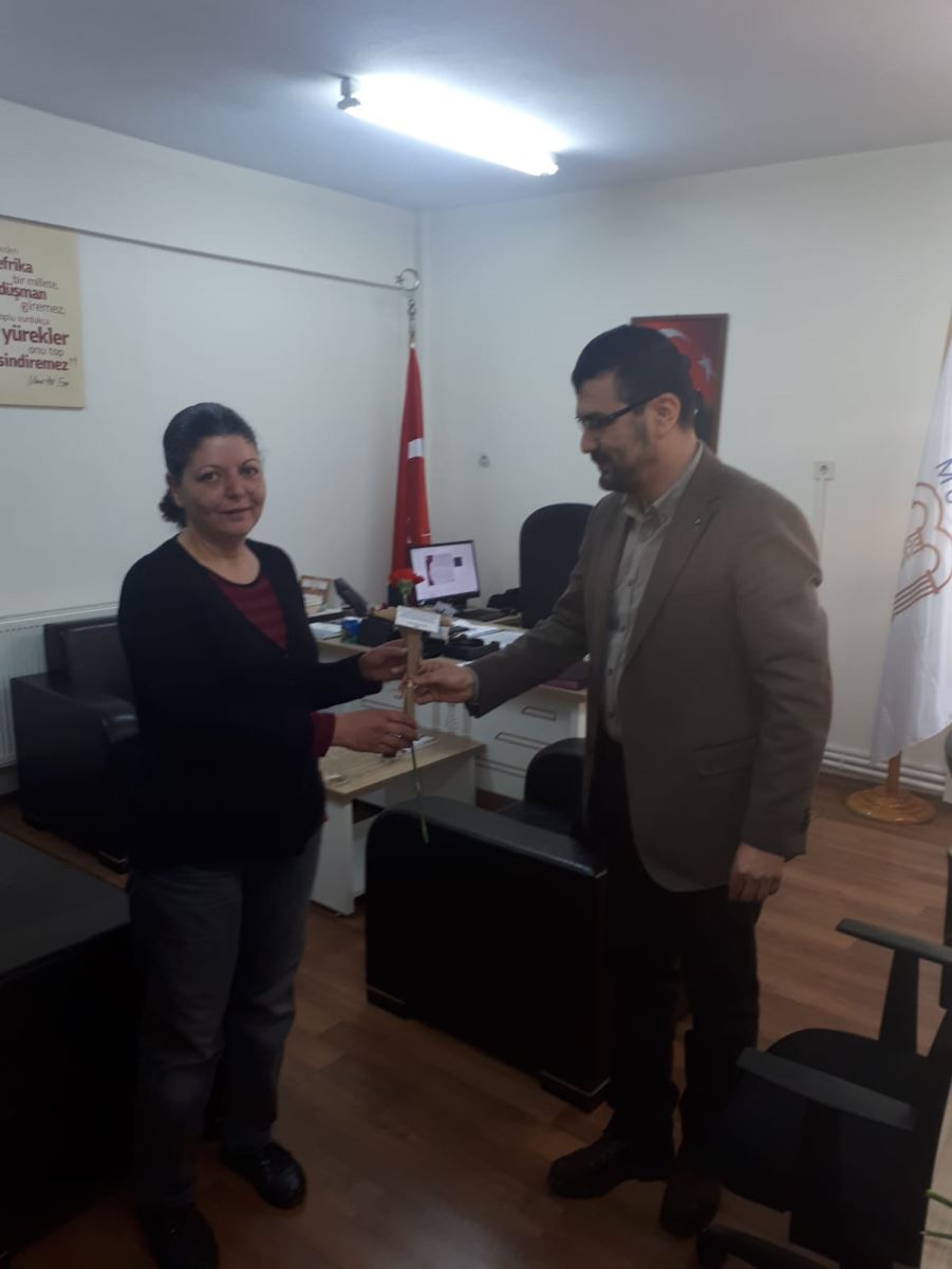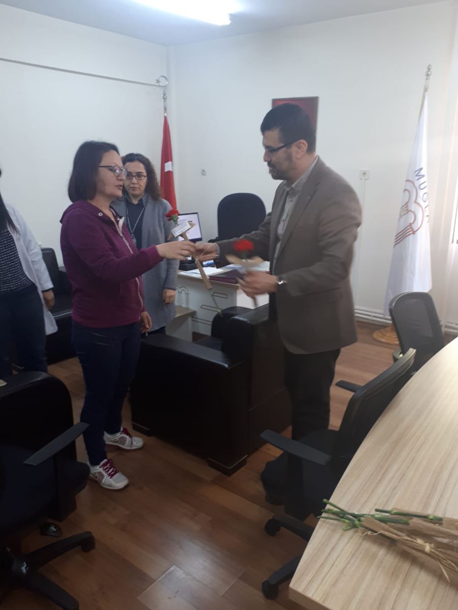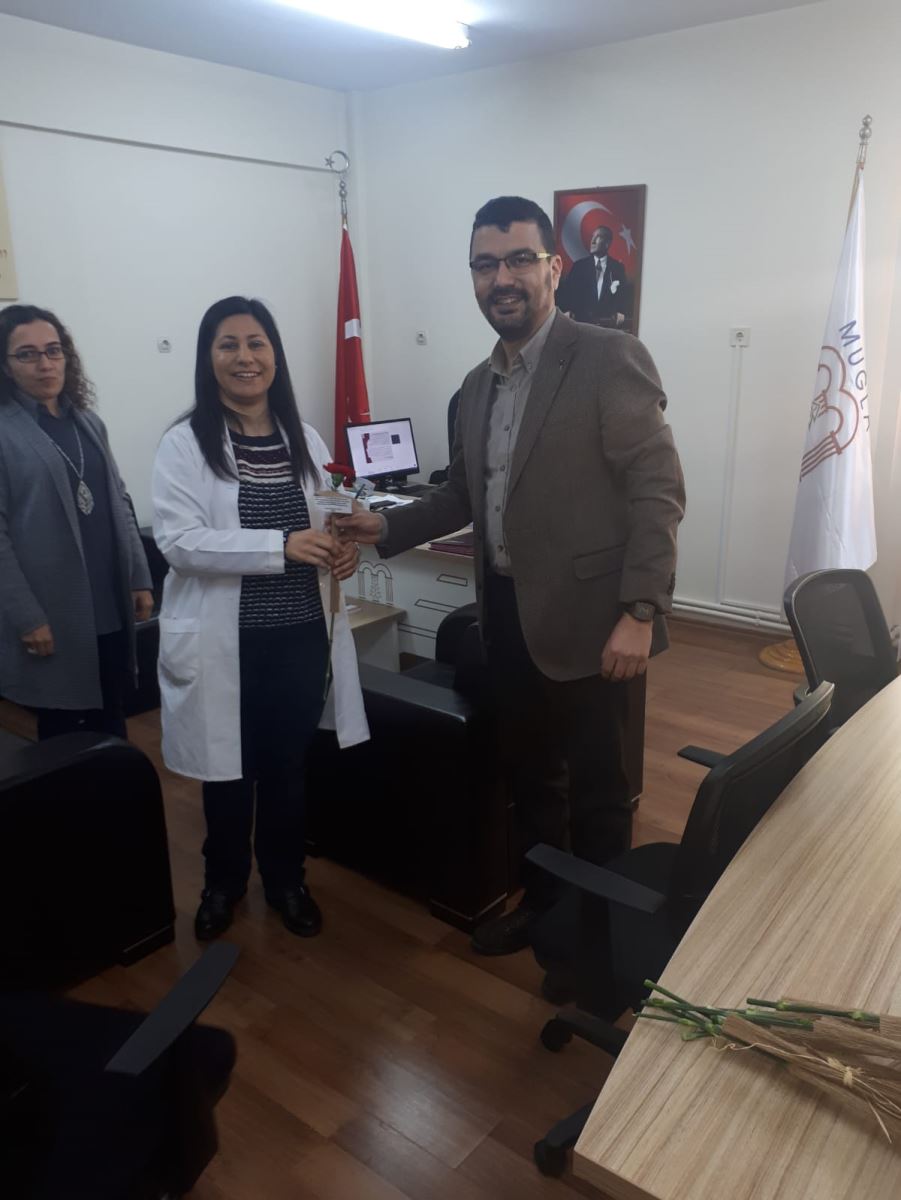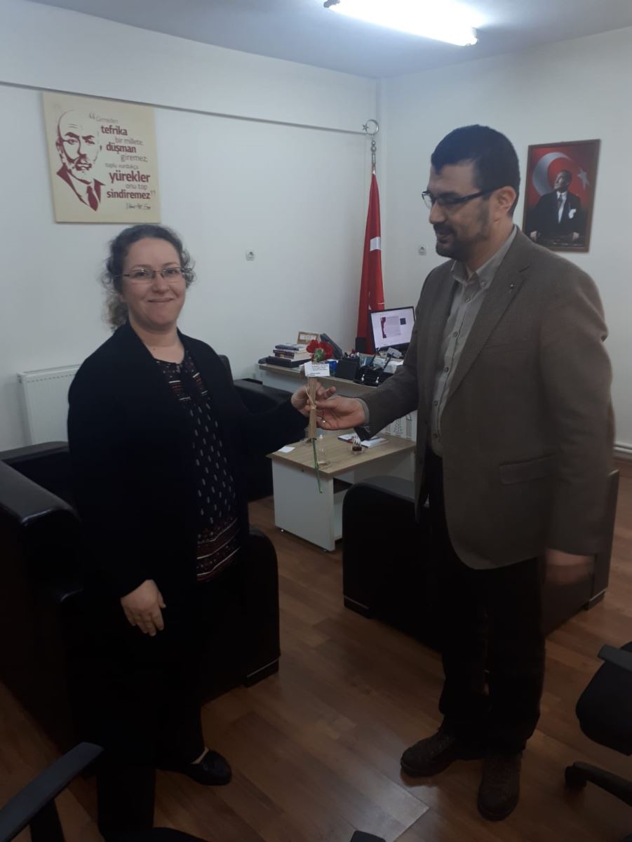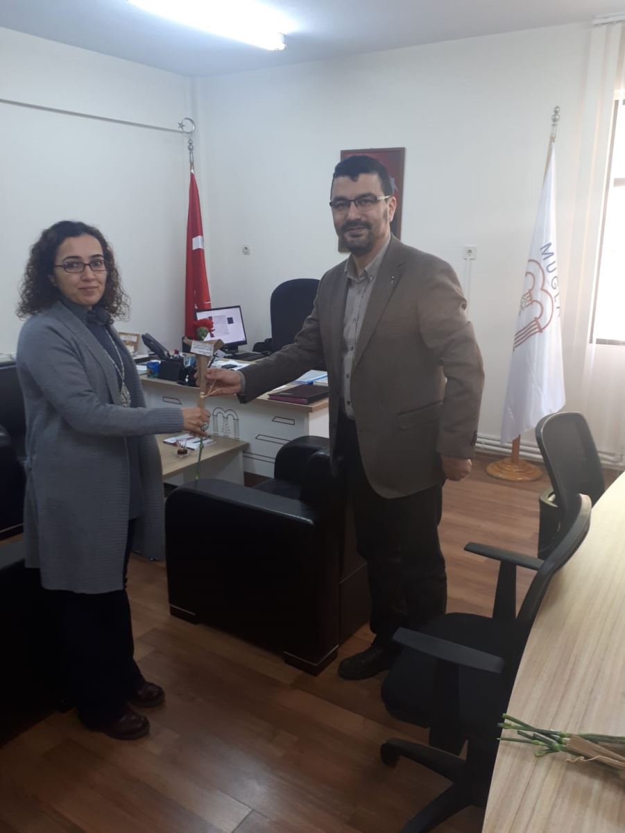 8 Mart Dünya Kadınlar Günü Kutlaması Meslek Yüksekokulumuzda 8 Mart Dünya Kadınlar Günü kutlaması gerçekleştirildi. Okulumuz personelinin Kadınlar Gününü kutlayan Yüksekokul Müdürümüz Sayın Öğr. Gör. Dr. Fatih Mehmet DEMİR personelimize çiçek takdim etti. Son Güncelleme : 08.03.2019 12:06:23 Okunma Sayısı : 910