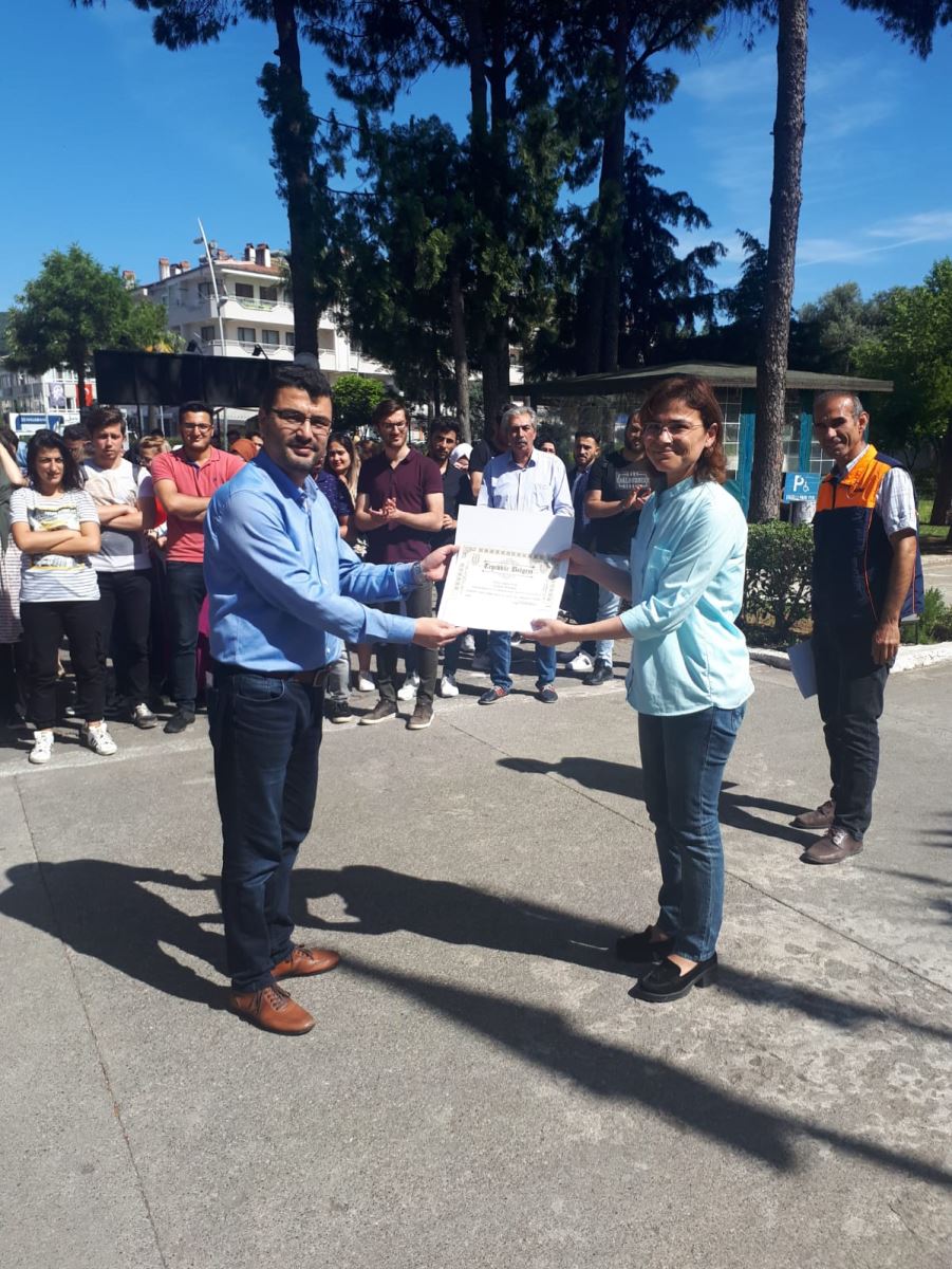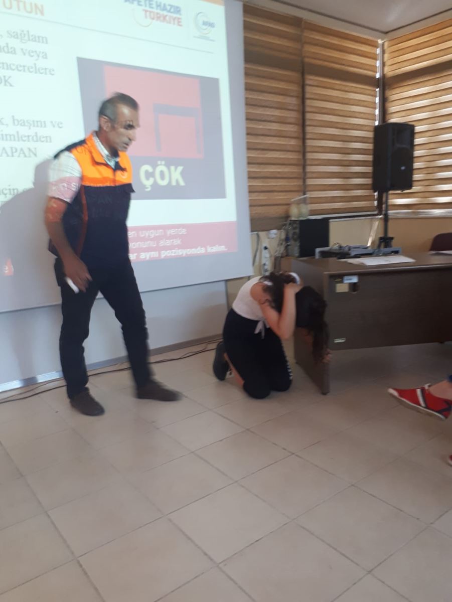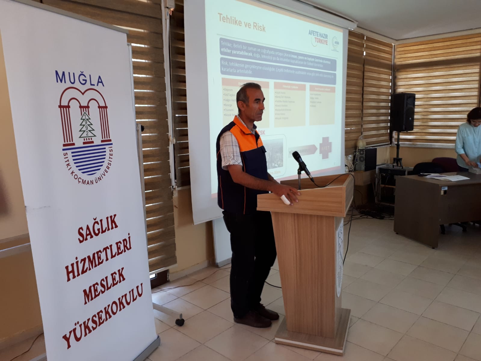 Afet Bilinci Eğitimi ve Tatbikatı, yüksekokulumuzda AFAD Muğla Eğitim Uzmanı Sayın Koray ECE ve Endüstri Mühendisi Sayın Selamı Tunç katılımlarıyla gerçekleştirildi. Tatbikatlı gerçekleştirilen eğitim sonunda değerli eğitmenlere yüksekokul müdürümüz Sayın Öğr.Gör.Dr. Fatih Mehmet DEMİR tarafından teşekkür belgesi takdim edildi.