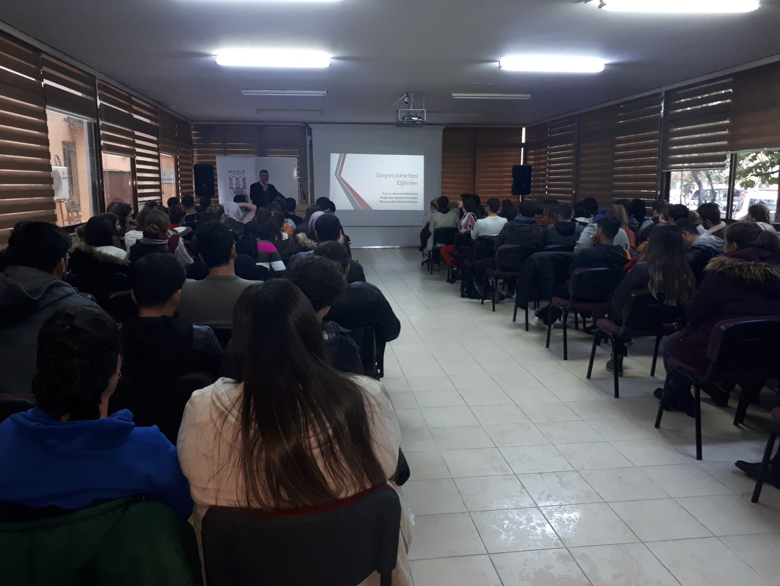 "Girişimcilikte Yeni Eğilimler" adlı seminer sayın Prof.Dr. Mehmet MARANGOZ'un sunumuyla gerçeklştirildi. Girşimcilik ile ilgili yeni eğilimlerin konuşulduğu ve gençlerin neden girişimci olmaları gerektiği üzerinde gerçekeşen seminere öğrencilerimizin ilgisi büyüktü. Seminer sonrasında okulumuz adına katılımından dolayı sayın hocamıza plaket takdim edildi.
